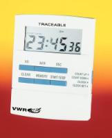 Innovative timer talks, times up, counts down, and tells time of day with traceable precision. Unique "thru-zero" feature allows alarming, counting up, and counting down from 23 hours, 59 minutes, 59 seconds with one-second resolution. The large 1.3 cm (½") high display and LCD digits continuously show the time remaining. During countdown, voice reporting frequency is every hour until the last hour is reached, then every 10 minutes until 1 minute is reached, then every 10 seconds until 10 seconds is reached, and finally every second. The timer also announces elapsed time since alarming. A time-out mode stops the timer for "off" periods for both up and down timing. In clock mode, the timer announces the time of day. The magnetic backing allows placement of the timer on lab refrigerators or incubators. You can stand the timer on a lab bench using the flip-open easel or clip it to a clipboard using the spring fastener. This product comes with several features, including Traceable precision, talking and counting up and down capabilities, and magnetic backing for convenient mounting. A serial-numbered certificate is provided from an ISO 17025 calibration laboratory accredited by A2LA to indicate instrument traceability to standards provided by the National Institute of Standards and Technology. The unit is supplied with two 1.5 V silver-oxide batteries for continuous two-year use. The product's dimensions are 6.4 × 8.3 × 1.3 cm (2½ × 3¼ × ½"), and it has an accuracy of 0.01%.