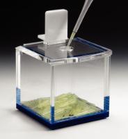 This box features a flip-top port cover for convenient one-handed disposal of used pipet tips, eliminating the need to handle pipet tips used with hazardous fluids. The 10mm (3/8") thick acrylic construction provides protection from beta radiation. A large, hinged lid allows easy removal of contents. Key Features: • Thick acrylic construction • Protects against beta radiation • Large, hinged lid • Easy disposal of used pipet tips Dimensions: 15.2 × 15.2 × 15.2 cm (6 × 6 × 6") (W × L × H) Cat. No.: 82010-754