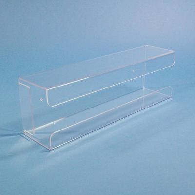 Tissue Box Holder^ Large. Clear 3.2mm acrylic. Mounts easily to walls; screws and wall anchors provided. Flame-treated edges for smoothness. 38.1Wx9.5Dx13.3Hcm.
