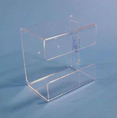 Tissue Box Holder^ small, made out of 1/8in clear acrylic. Screws and wall anchors included. Dimensions: 5in w x 5in h x 3.25in d.