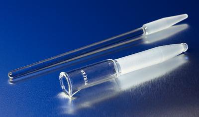 PYREX brand, Tissue Grinder, Glass Pestle, Tissue Grinders^ 1 mL. 19 x 83 mm. 7 x 155 mm. Designed to handle both initial grinding and final homogenization in the same sequence of operations. The lower conical section is intended primarily for the initial grinding.