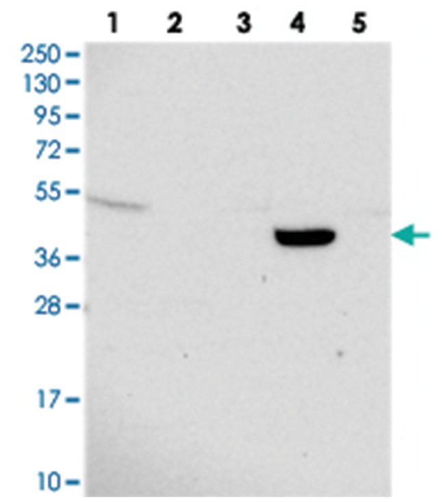 TMEM44, Rabbit, Polyclonal Antibody, Abnova, Rabbit polyclonal antibody raised against recombinant TMEM44, Each