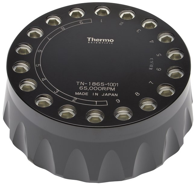 Optimized for CsCl Plasmid DNA separations, the Thermo Scientific TN-1865 Neo Angle Rotor provides a very steep angle, with an 18-place 5mL tube capacity.