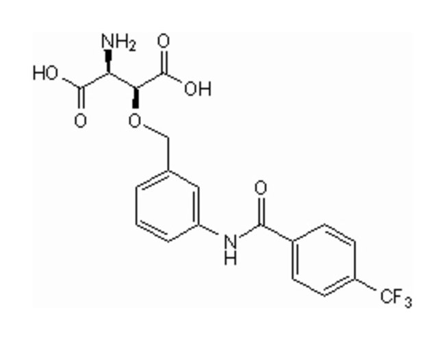 TFB-TBOA is a potent and selective glial glutamate transporter EAAT1 and EAAT2 inhibitor (IC50 values are 17, 22 and 300 nM for EAAT2, EAAT1 and EAAT3 respectively). Has no effect on EAAT4 and EAAT5, or a wide range of neuronal receptors and transporters. Attenuates glutamate-stimulated intracellular Na elevation in astrocytes in vitro (IC50 = 43 nM). Induces severe convulsions in vivo.