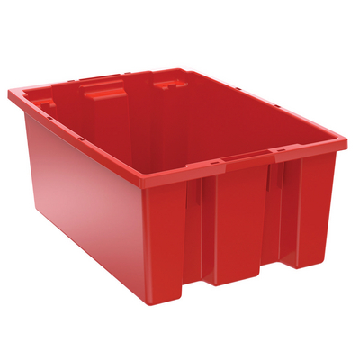 Nest and Stack Tote 12.93 gallon^ Nest and Stack Tote, Color: Red, Material: Plastic, Features: Ideal solution for storage, transfer, Strong, high-density, NSTs are ideal for storage, longer service life resulting in lower replacement costs, Dimension: 19-1/2X13-1/2X8 in, Size: 12.93 gallon