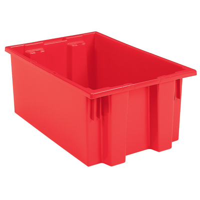 Nest and Stack Tote 9 gallon^ Nest and Stack Tote, Color: Red, Material: Plastic, Features: Ideal solution for storage, transfer, Strong, high-density, NSTs are ideal for storage, longer service life resulting in lower replacement costs, Dimension: 19-1/2X15-1/2X10 in, Size: 9 gallon