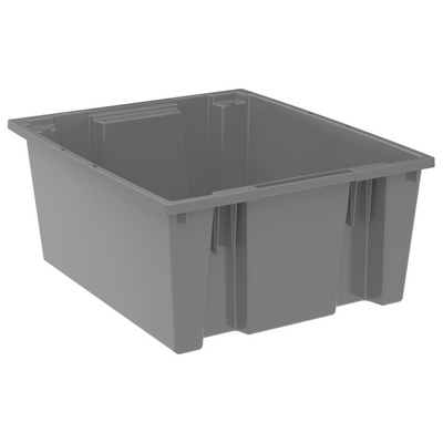 Nest and Stack Tote 14.98 gallon^ Nest and Stack Tote, Color: Grey, Material: Plastic, Features: Ideal solution for storage, transfer, Strong, high-density, NSTs are ideal for storage, longer service life resulting in lower replacement costs, Dimension: 23-1/2X19-1/2X10 in, Size: 14.98 gallon