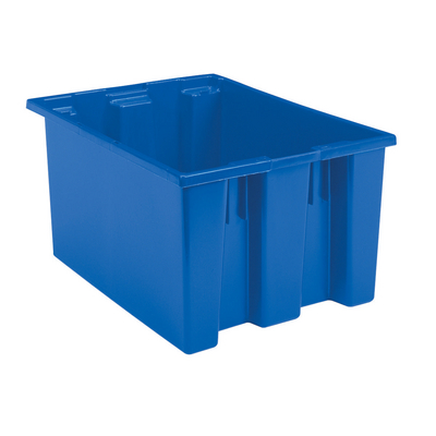 Nest and Stack Tote 19.4 gallon^ Nest and Stack Tote, Color: Blue, Material: Plastic, Features: Ideal solution for storage, transfer, Strong, high-density, NSTs are ideal for storage, longer service life resulting in lower replacement costs, Dimension: 23-1/2X19-1/2X13 in, Size: 19.4 gallon