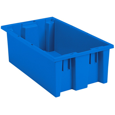 Nest and Stack Tote 3.7 gallon^ Nest and Stack Tote, Color: Blue, Material: Plastic, Features: Ideal solution for storage, transfer, Strong, high-density, NSTs are ideal for storage, longer service life resulting in lower replacement costs, Dimension: 18X 11X6 in, Size: 3.7 gallon