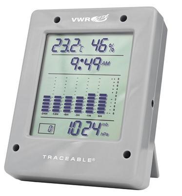 Perfect unit for plants, labs, and all other environments where there is a need to monitor conditions of environmental air parameters., A four-line LCD continously and simultaneously shows barometric presure, temperature, relative humidity, barometric pressure trend and time., 04_BodyText: Computer output allows unit to be connected to a computer using the accessory Computer Data Acquisition System (sold separately) to permanently capture readings., 05_BodyText: Minimum/Maximum readings for barometric pressure, temperature and relative humidity are stored every hour for last 24 hours and are available for recall at the touch of a button. Barometric trend shows current reading, previous 1, 3, 6,12 hour and 24-hour readings in bar chart format; Adjustable altitude compensation from -100 to 2500 meters., 08_Certifications: To assure accuracy, a Traceable® Certificate is provided from a ISO/IEC 17025 calibration laboratory accredited by A2LA. It indicates traceability to standards provided by NIST., 10_Ordering: Supplied with batteries, wall mount, flip open stand, and a Traceable® Certificate., Final SAP Desc Link: 6790329, SAP Description Status: Ready, Temperature Range: 32 to 131ºF and 0 to 55ºC, Perfect unit for plants, labs, and all other environments where there is a need to monitor conditions of environmental air parameters., A four-line LCD continously and simultaneously shows barometric presure, temperature, relative humidity, barometric pressure trend and time., 04_BodyText: Computer output allows unit to be connected to a computer using the accessory Computer Data Acquisition System (sold separately) to permanently capture readings., 05_BodyText: Minimum/Maximum readings for barometric pressure, temperature and relative humidity are stored every hour for last 24 hours and are available for recall at the touch of a button. Barometric trend shows current reading, previous 1, 3, 6,12 hour and 24-hour readings in bar chart format; Adjustable altitude compensation from -100 to 2500 meters., 08_Certifications: To assure accuracy, a Traceable® Certificate is provided from a ISO/IEC 17025 calibration laboratory accredited by A2LA. It indicates traceability to standards provided by NIST., 10_Ordering: Supplied with batteries, wall mount, flip open stand, and a Traceable® Certificate., Digital Barometer, Humidity Range: 5 to 95% RH, Cat. No.: 10510-922, Pressure range: 500 - 1030 (mbar), Final SAP Desc Link: 6790329, SAP Description Status: Ready, Perfect unit for plants, labs, and all other environments where there is a need to monitor conditions of environmental air parameters., A four-line LCD continously and simultaneously shows barometric presure, temperature, relative humidity, barometric pressure trend and time., 04_BodyText: Computer output allows unit to be connected to a computer using the accessory Computer Data Acquisition System (sold separately) to permanently capture readings., 05_BodyText: Minimum/Maximum readings for barometric pressure, temperature and relative humidity are stored every hour for last 24 hours and are available for recall at the touch of a button. Barometric trend shows current reading, previous 1, 3, 6,12 hour and 24-hour readings in bar chart format; Adjustable altitude compensation from -100 to 2500 meters., 08_Certifications: To assure accuracy, a Traceable® Certificate is provided from a ISO/IEC 17025 calibration laboratory accredited by A2LA. It indicates traceability to standards provided by NIST., 10_Ordering: Supplied with batteries, wall mount, flip open stand, and a Traceable® Certificate., Original Manufacturer Calibration Per Thermometer, Cat. No.: 75840-430, Includes: ISO 17025 NIST Certification, Original Manufacturer Re-Calibration and No Extra Shipping, Final SAP Desc Link: 6790329, SAP Description Status: Ready