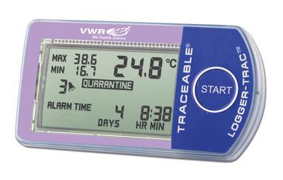 The VWR® Traceable® Logger-Trac™ Temperature datalogger is an ideal tool for monitoring material in transit, with a variety of intuitive user-programmable features and functions., Active LCD display technology allows the duration (cumulative time) for the temperature excursion to be viewed on the display immediately, without the need to download data. Reusable/Re-programmable. Displays cumulative alarm duration from user selected minimum/maximum values. Integrates with MaxiThermal software for complete data analysis. Perfect for monitoring material during transportation. Thermometer has temperature minimum/maximum memory with exported data., 04_BodyText: The LCD display shows the running alarm tally based on the acceptable temperature range and recording interval. Alarm tally is incremented when the reading goes outside the acceptable temperature parameters during the recording interval and continues to be incremented if the temperature has remained outside the acceptable temperature parameters during the following interval. Quarantine notification may be set by the user to display “QUARANTINE” once the alarm tally has reached the maximum number acceptable (from 1 to 99). Quarantine notification instantly alerts the user that detailed data analysis is required for the material being monitored. The internal flash memory stores 7680 readings. To ensure no data loss, the thermometer will stop logging data once the memory is full (data will not be overwritten). While recording, the following information is displayed: current, minimum and maximum temperature achieved, and cumulative running time. Once an alarm condition has occurred, the following additional information is displayed: Alarm Tally, “ALARM” notification, and cumulative alarm time. If a quarantine condition has occurred, the following additional information is displayed: “QUARANTINE” notification (taking the place of the “ALARM” notification), alarm icon., 05_BodyText: Measuring only 2.56x1.34x0.35" and weighing only 0.65 oz., it is the perfect solution for monitoring material in transit as well as reagents, clinical samples, vaccines, pharmaceuticals, and food items in any location. Waterproof design (IP66) eliminates concerns when located in damp environments or areas that are required to be washed down. For complete flexibility, the user-defined recording interval may be set based on the number of desired days to log (from 4 hours to 365 days) or the desired time interval (from every 2 seconds to every 24 hours)., 06_BodyText: The user may select the acceptable temperature parameters (high and low temperature values) in 1° increments. The cumulative alarm duration timer is started each time the reading is outside of the acceptable temperature parameters to provide a total excursion time since the start of recording., 02_BulletPoint: Active LCD display technology | User-selectable parameters and functions | Multiple alarm notifications | Compact, lightweight, waterproof design, 08_Certifications: An individually-numbered Traceable® certificate is provided which assures accuracy from an ISO/IEC 17025 (1750.01) calibration laboratory accredited by A2LA. It indicates traceability to standards provided by NIST (National Institute of Standards and Technology). Individual Logger-Trac™ Thermometers are pre-programmed with alarm values of 2°C (low) and 8°C (high) and a recording interval to allow for 30 days of recording (readings are logged every 5 minutes, 33 seconds)., 10_Ordering: Supplied with batteries and a Traceable® certificate. Logger-Trac™ Sleeves are an optional accessory designed to keep dataloggers safe during transportation. The accessory Logger-Trac™ Cradle-Cable enables batch programming for up to eight units, and is used to download data from the Logger-Trac™ Temperature datalogger into the MaxiThermal software program. The accessory MaxiThermal Software is designed for complete data analysis. All accessory items are sold separately., Resolution: T: 0.1 °C (°F), Data Memory: 7600, The VWR® Traceable® Logger-Trac™ Temperature datalogger is an ideal tool for monitoring material in transit, with a variety of intuitive user-programmable features and functions., Active LCD display technology allows the duration (cumulative time) for the temperature excursion to be viewed on the display immediately, without the need to download data. Reusable/Re-programmable. Displays cumulative alarm duration from user selected minimum/maximum values. Integrates with MaxiThermal software for complete data analysis. Perfect for monitoring material during transportation. Thermometer has temperature minimum/maximum memory with exported data., 04_BodyText: The LCD display shows the running alarm tally based on the acceptable temperature range and recording interval. Alarm tally is incremented when the reading goes outside the acceptable temperature parameters during the recording interval and continues to be incremented if the temperature has remained outside the acceptable temperature parameters during the following interval. Quarantine notification may be set by the user to display “QUARANTINE” once the alarm tally has reached the maximum number acceptable (from 1 to 99). Quarantine notification instantly alerts the user that detailed data analysis is required for the material being monitored. The internal flash memory stores 7680 readings. To ensure no data loss, the thermometer will stop logging data once the memory is full (data will not be overwritten). While recording, the following information is displayed: current, minimum and maximum temperature achieved, and cumulative running time. Once an alarm condition has occurred, the following additional information is displayed: Alarm Tally, “ALARM” notification, and cumulative alarm time. If a quarantine condition has occurred, the following additional information is displayed: “QUARANTINE” notification (taking the place of the “ALARM” 