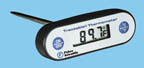 Fisherbrand™ Traceable™ Digital Thermometers with Stainless-Steel Stem are resistant to acids, bases and solvents. Used to measure temperature of gases, food, and semisolids.Short-stem piercing models are ideal for carrying in a pocketLonger probes are excellent for measuring sample temperatures while stirring in deep vessels or water bathsThermometers with longer sampling rates allow thermometer to be removed from sample before reading—ideal when display is difficult to read in measuring positionFor use in cuvets, soil, incubators, petroleum products and foodsTraceable to standards provided by NISTWaterproof thermometers (see Models 14-648-43, -44) are ideal for wet labs, wash-down areas and field use0.375 in. LCD screen thermometers available (see Cat. No.14-648-47); also available with protective guards (see Cat. Nos. 06-664-32 and 06-664-30)CertificationsIndividually serial-numbered Traceable Certificate is provided from an ISO 17025 calibration laboratory accredited by A2LA™; indicates traceability to standards provided by NIST™.