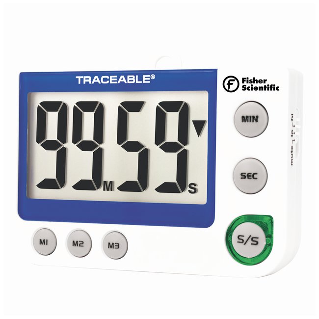 Easy on the eyes. Fisherbrand Traceable Flashing LED Alert Big-Digit Alarm Timer has a large display that can be seen from across the classroom.