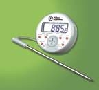 Stainless-steel probe with piercing tip allows constant exposure to extreme temperatures at the end of the range. Fisher Scientific™ Full-Scale Thermometer readings are updated every second and displayed on a 0.37 in. (9.4mm) LCD readout. Switchable °F/°C temperature ranges.Magnetic back allows placement on metal surfaces (incubators, freezers, water baths)Flip-open easel allows use on lab bench; spring fastener clips onto any edgeResolution, 0.1° from -20 to 200 and 1° elsewhereMeasure just 2.12 dia. × 0.56 in. depth (5.3 × 1.3cm)Probe dia. × L: 0.14 × 5.5 in. (0.4 × 14cm)Cable length: 10 ft. (3m)Plus model also includes high/low alarm, minimum/maximum memories, and hold.CertificationsIndividually serial-numbered Traceable Certificate is provided from an ISO 17025 calibration laboratory accredited by A2LA™; indicates traceability to standards provided by NIST™.