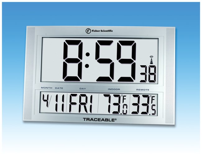 View giant size digits from anywhere with desk/wall mount. Fisherbrand Traceable Giant Digits Radio Atomic Clock utilizes radio signal from the NIST™ Colorado atomic clock and automatically sets correct time, adjusts for daylight saving, leap year, and even the Earth's wobble in leap seconds.