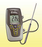 Carries its 42 in. probe cable in a reel-compartment “pouch” located in back of unit. Fisher Scientific™ Traceable™ Kangaroo Thermometer is an ideal carry-around portable thermometer which fits in shirt pocket, or the built-in stand with a bench foot print of only 4.5 sq.in..Intuitive operation allows every user to record identical resultsUnit automatically captures and recalls minimum and maximum temperature readings over any time periodHigh and low alarm may be programmed in 1° incrementsAlarm sounds every minute until temperature returns to non-alarm conditionHold button freezes display to record a current readingStainless-steel probe for use in acids, bases, and solvents SpecificationsResolution: 0.1° (between -19.9 and 199.9), otherwise 1°Accuracy: ±1°C (between -30 and 250°C), otherwise ±2°CProbe diameter: 0.14 in.; length, 7.5 in.Large inch digits are readable from 20 ft.Compact size is 4.75L × 2.5W × 0.5 in.H (12 × 6.4 × 1.3cm)Weight: 2.75 oz. (77.96g)CertificationsIndividually serial-numbered Traceable Certificate is provided from an ISO 17025 calibration laboratory accredited by A2LA™; indicates traceability to standards provided by NIST™.