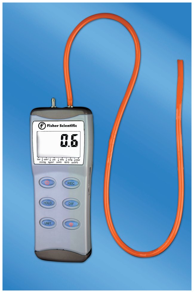 Portable units measure and display differential pressure/vacuum in 11 different units (psi, mbar etc)Portable unit measures and displays differential pressure/vacuum in: psi, mbar, bar, cm/H2O, inch/H2O, feet/H2O, mm/Hg, inch/Hg, kg/cm2, oz./inch2 and kPaResponse time: 0.5 sec.Accuracy: ±0.3% of full-scale between 0 and 50°CReadings are shown on backlit display with 0.625 in.H (1.6cm) digits visible from 6 ft. Feature DATA HOLD button to freeze display and capture readingsMemory key recalls highest and lowest readingsDifferential feature calculates the difference between two readingsZeroing is achieved at the touch of a buttonDisplay times up to 99 hours, 59 minutes, 59 seconds which allows the user to record when maximum or minimum pressure is achievedPrinting ModelCaptures and stores up to 99 readings at the press of a buttonDatalogging permits capturing and storing up to 12,000 readings at intervals as short as 1 second or as long as 2 hours; prints sample number, current reading, date and timeManual memories and datalogger memories print without the need for a computerComputer output allows manual memories, datalogger memories and current programmable capturing to be streamed to a PC computer