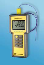 Constructed of shock-resistant ABS plastic, the Fisherbrand Traceable Total-Range Thermometer is designed for rough handling. Water-resistant case stops dirt, dust, fumes, and water.FeaturesFast-response microprocessor updates display twice per secondThermometer reads from -200° to 1370°C/-328° to 2498°F, with resolution of 0.1° and 1°Probe range (supplied with unit): -40° to 250°C continuous or 300°C short-term; accepts all Type-K thermocouplesAccuracy: ±1°C between -50°C to 740°C, otherwise ±2°CJumbo-size, 0.62 in. (15.7mm) digits, back-lighting buttonHOLD button freezes display to capture current readingFunctionsSwitches from °F to °C at the touch of a buttonRecalls minimum and maximum temperature readings captured during any timeAlarm sounds when temperature rises above or falls below high/low setpointsCountup timer alarm may be set from 23 hours, 59 minutes to 1 minuteOrder InfoDimensions: 7L × 3.25W × 1.5 in. H (17.8 × 8.3 × 3.8cm). Weight: 8 oz. (227g). Uses all Type-K thermocouple probes.CertificationsIndividually serial-numbered Traceable Certificate is provided from an ISO 17025 calibration laboratory accredited by A2LA™; indicates traceability to standards provided by NIST™.