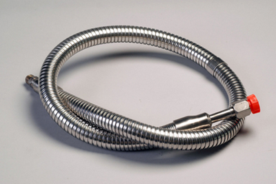 Transfer Hose^ Constructed of a flexible stainless steel suitable for the transfer of cryogenic fluids. Length: 1.8m. Fitted with 3.5mm NPT male fitting on one end and a CGA295 female fitting on the other end.