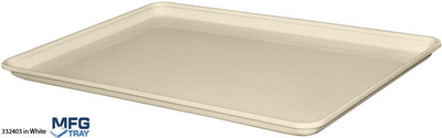 Fiber Glass Material^ 4 sided tray provided in white, size is 18 x 26 x 1 at top outside dimension / bottom inside dimension is 16.25 x 24.38