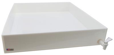 TRAY RECT DISP HDPE 22X26X4IN^ All welded 1/4in thick HDPE leakproof trays with a polypropylene dispensing valve close to tray bottom.