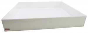 Heavy plastic trays are fabricated with 3/16” thick polypropylene or 1/4”high density polyethylene and feature an all welded construction. Dimensions listed are inner (I.D.).