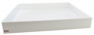 Heavy plastic trays are fabricated with 3/16” thick polypropylene or 1/4”high density polyethylene and feature an all welded construction. Dimensions listed are inner (I.D.).