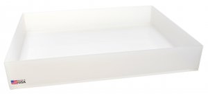 Heavy plastic trays are fabricated with 3/16” thick polypropylene or 1/4”high density polyethylene and feature an all welded construction. Dimensions listed are inner (I.D.).