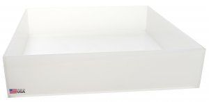 Heavy plastic trays are fabricated with 3/16” thick polypropylene or 1/4”high density polyethylene and feature an all welded construction. Dimensions listed are inner (I.D.).