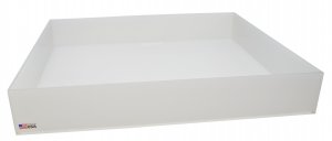 Heavy plastic trays are fabricated with 3/16” thick polypropylene or 1/4”high density polyethylene and feature an all welded construction. Dimensions listed are inner (I.D.).