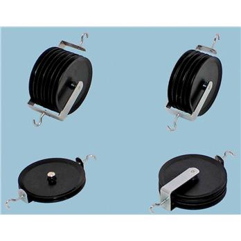 These jumbo sized pulleys are designed for classroom demonstration. The single, double, triple, and quadruple pulleys are all 70 MM in diameter. The pulleys are "open " type-users can run pulley cords through them more easily. Lightweight, low-friction, and deformation-resistant plastic ensures accurate results.