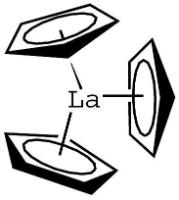 Tris(cyclopentadienyl)lanthanum (III)^ 99.9% (REO),UN3181,Crystalline, Ampouled under argon,DANGER: FLAMMABLE, irritates skin and eyes,1g,5g,FLAMMABLE SOLID,