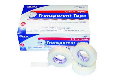 Dukal transparent tape is a good quality clear tape that can be torn bidirectionally^ These tapes are hypoallergenic and latex free.