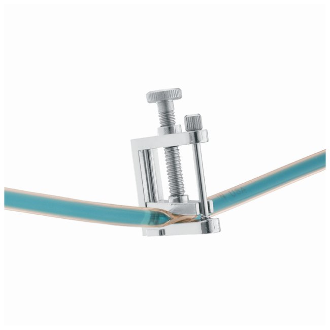Flow control device resists corrosion and rustOffer easy one-hand operationConvex bearing surfaces and rounded edges protect tubingOperated with a simple squeezeNickel-plated constructionClamp dimensions: W x H -open 37 x 62mm (1.46 x 2.44 in.)