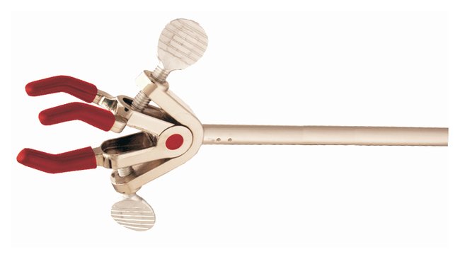 Enables secure gripping and positioning with added strength and durabilityThree-pronged grip with large grip adjustment rangeClosed yoke construction that minimizes contamination and corrosion of internal componentsPrecise pressure regulation when gripping glassware surfaces reduces the chance of breakageConstructed of nickel-plated zinc with vinyl sleevesFor temperatures above 100°C, fiberglass coversAn additional holder must be purchased in order to attach clamps to frames or other apparatus.
