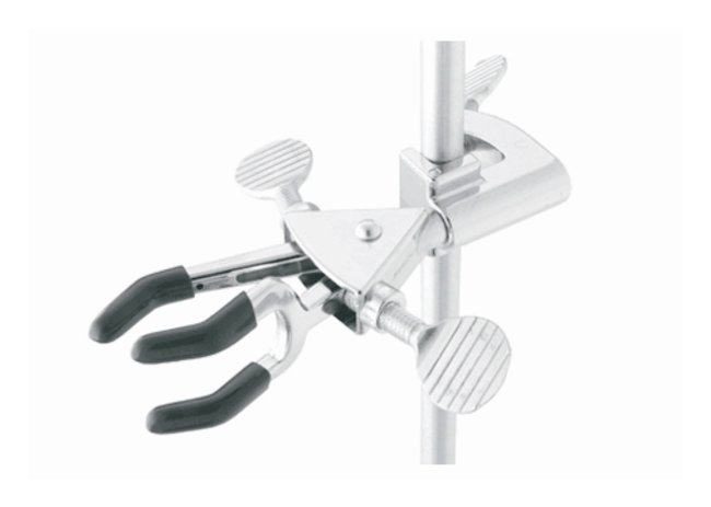 Three-Prong Dual Adjust Fixed-Position Clamp, Ideal for holding apparatus near the lab-frame where no adjustment is required after set-up, Each