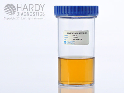 Tryptic Soy Broth (TSB)^ Tryptic Soy Broth (TSB), USP, Double strength, 50ml, 180ml optically clear, Shatter resistant, Polycarbonate wide mouth jar, Order by the package of 12, By Hardy Diagnostics. (Double Strength) For the cultivation of microorganisms.