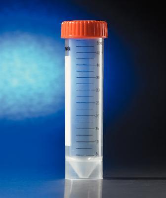 Corning* Self-Standing Centrifuge Tubes^ Sterile polypropylene tubes for sample storage and working in laminar flow hoods. Conical bottom for pelleting and sample recovery. Skirted for self-standing. Disposable. Plug-seal cap. Volume: 50mL. Maximum RCF: 3, 000g.