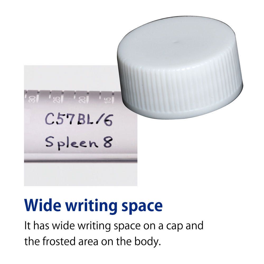 Centrifuge tube 50ml^ Centrifuge tube, Conical bottom, Cap color: White, Sterilized, Half plug seal, Sealing point, Self-standing, Triple thread screw, High precision-graduation to the cone top, Wide writing space, Centrifugal force: 18000xg, Temperature: 20 deg C, Volume: 50ml