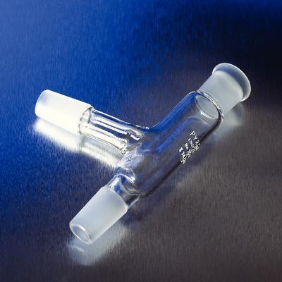 PYREX brand, Connecting, 75[degree] Angle, Three-Way, [standard taper] Joints, Adapter^ 14/20. 105 mm. This tube is also a replacement part for organic chemistry kits Nos. 6949E, 6949G-2 and 6949K. The sidearm is at an angle approximately 75[degree] from the lower joint.