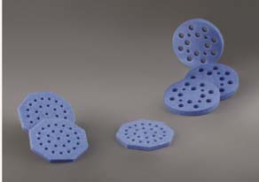 Floating Test Tube Rack^ Economical, polyfoam, octagonal test tube rack ideal for 0.25mL and 0.5mL PCR microtubes. Easy to use in waterbaths or beakers. Nonabsorbent. Size: 83x6.4mm.