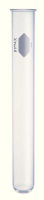 KIMAX* Chemical Test Tube^ Reusable. Borosilicate Glass. Made of Kimble* KG-33 borosilicate glass to resist heat, mechanical shock and chemical attack. Walls are uniform and strong, with heavy bottoms. With rim and fused-on, white enamel spot for marking. Size,mm: 25x200. Volume: 75ml.