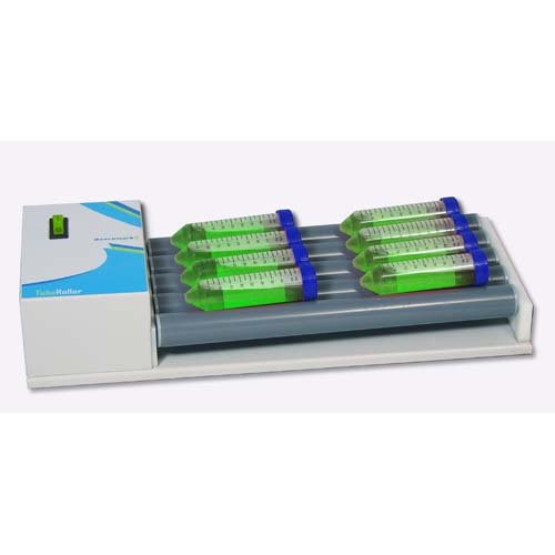 Benchmark TubeRollers are designed for the gentle, throrough mixing of a variety of containers, including Vacutainers, bottles, test tubes, centrifuge tubes and roller botles. Both models (5 roller and 10 roller) operate at a constant 38rpm, chosen as the optimum speed for the broadest range of mixing requirements. As the roller mechanism rotates through each complete revolution, the right side of each roller is gently elevated about 0.5 in (13mm) and returns to the horizontal starting position. This additional, gentle up/down motion provides a "wave" effect and guarantees that the entire sample is subjected to complete, thorough mixing, end to end. This built in tilt feature provides a level of homogeneous mixing uniformity that can not be matched by any stationary roller apparatus.