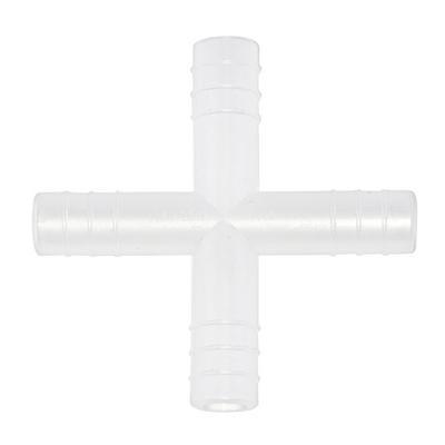 4-Way Tubing Connectors^ Fits tubing i.d. in inches 1/2-9/16. excellent chemical resistance. autoclavable polypropylene. serrated connecting surfaces to prevent tubing from slipping. withstands flows up to 20 p.s.i. 100 per case.