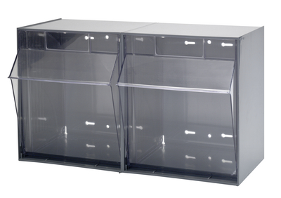 Bin^ Space saving bin unit keeps small and medium sized parts organized, sorted, Clear and break resistant plastic containers tip open to a 45 degree angle and completely removable, Gray frame, Dimension(LxWxH): Outside: 11-3/4 x 23-5/8 x 13-7/8 Inch, Bin: 8-7/8 x 11-1/16 x 13-5/8 Inch