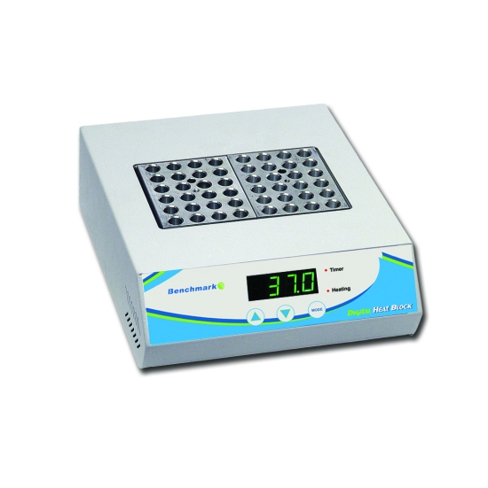 This Double Position BenchMark Digital Dry Bath offers digital control over both temperature and time, eliminating the need for an external thermometer or timer. The unit is extremely space efficient. The cavities of the high grade aluminum blocks are precision machined to match the conical size and shape of 0.5, 1.5, 2.0, 15 and 50mL tube sizes, providing unsurpassed temperature uniformity. Thirteen assorted blocks are available in total for compatibility with nearly all common plate and tube sizes. Custom blocks are also available upon request. This Benchmark Dry Bath offers a built-in user recalibration function to guarantee long term temperature accuracy. The Dry Bath includes an easy-to-use block lifter with a temperature insulated handle for quick, convenient exchange of blocks even while they are still hot. Double Position unit holds two blocks at a time. Temperature range: ambient 5 to 150°C. Temperature resolution: 0.1°C. Temperature accuracy: /-0.2°C. Temperature increments: 0.1°C. Temperature uniformity: /-0.2°C. Timer: 1 to 999 minutes. Dimensions (W x D x H): 20 x 26 x 8cm (8.7 x 10.3 x 3.2 inches). Block dimensions: 7.6 x 9.5 x 5cm (3 x 3.75 x 2 inches). Chamber: fast heating aluminum. Operating temperature range: 4°C to 65°C. Electrical: 115V AC, 60Hz (Inquire for product in 230V, 50Hz). Warranty: 2 Years. Sold individually. Benchmark Scientific #: BSH1002.