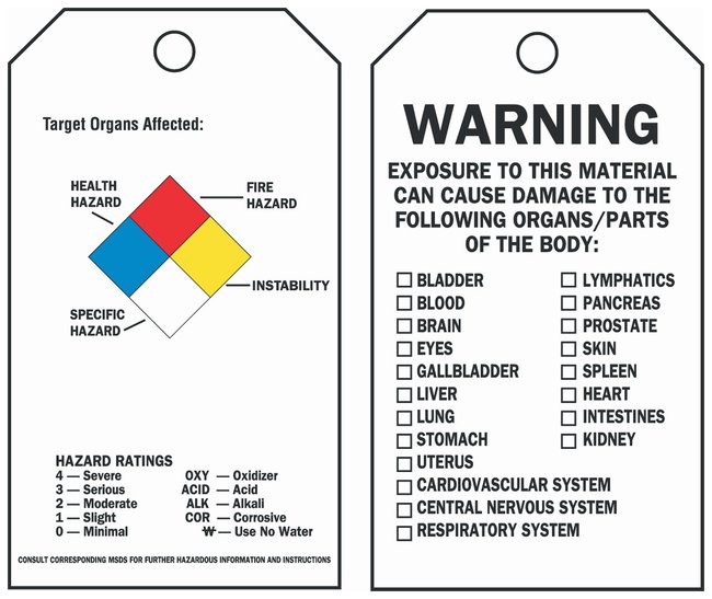 Two Sided Right-To-Know Accident Prevention Tags, Economy Polyester, Pack of 25