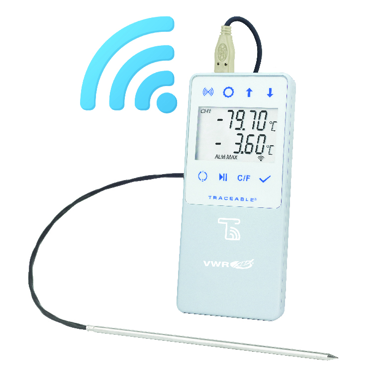VWR® TraceableLIVE® is the simple, efficient, and reliable way to stay connected to critical environments, wherever you go., Stainless-steel probe: Fast-response stainless-steel 316 probe displays the slightest temperature change instantly. Place probe inside ULT freezer-readings are updated six times a minute. Probe has a Ø of 0.12", stem length of 6", dimension of 5.875" and a cable length of 9'., 04_BodyText: Audible, high-accuracy thermometer and visual alarms helps those present in the lab identify any out-of-range conditions. Designed for Ultra-Low (ULT) freezers-monitor temperatures below −80 °C ensuring critical samples are not compromised. Ideal for monitoring ultra-low temperature freezers and include a FEP cable. High-impact and chemical-resistant ABS plastic case., 05_BodyText: With TraceableLIVE®, stay connected to the lab with a smartphone, tablet, or personal computer. By simply using the TraceableLIVE® app, or visiting Traceablelive.com on any browser, users can view current humidity and temperatures, control alarm parameters, view datalogging history, and view and generate reports. TraceableLIVE® Standard and Premium subscription plans are now available on website (https://us.vwr.com/store/product/35955573/traceablelive-subscription-coupon-codes-cole-parmer)., 02_BulletPoint: Monitor temperature readings locally and remotely by connecting to existing Wi-Fi | Ideal for ULT freezers, two probe version permits monitoring the temperature of a ULT freezer and ambient air temperature simultaneously | Alerts: temperature alarm, connectivity interruption, low battery | Cloud-based data interface with no local software required; web, Android, Apple IOS data visibility | Continuous data transmission and monitoring using SSL encrypted SECURE connection | Receive Mobile Push, Email, or Text notifications | Unlimited scalability; use TraceableLIVE® in individual labs or an entire network of facilities | Multiple point temperature calibration traceable to NIST, with calibration points of −80, −40, 0, and 100 °C, 08_Certifications: CE marked. RoHS compliant. Traceable to NIST for accuracy. Multi-point calibration on an individually-numbered Traceable® certificate which assures accuracy from an ISO/IEC 17025:2005 (1750.01) calibration laboratory accredited by A2LA. It indicates traceability of measurements to the SI units through NIST or other recognized national measurement institutes (NMI) that are signatories to the CIPM mutual recognition agreement., 10_Ordering: Units are supplied with two probe, quick start guide, batteries, wall mount, Velcro®, magnetic strips, and an ISO 17025 Traceable® Certificate., Resolution: T: 0.01 °C, VWR® TraceableLIVE® is the simple, efficient, and reliable way to stay connected to critical environments, wherever you go., Stainless-steel probe: Fast-response stainless-steel 316 probe displays the slightest temperature change instantly. Place probe inside ULT freezer-readings are updated six times a minute. Probe has a Ø of 0.12", stem length of 6", dimension of 5.875" and a cable length of 9'., 04_BodyText: Audible, high-accuracy thermometer and visual alarms helps those present in the lab identify any out-of-range conditions. Designed for Ultra-Low (ULT) freezers-monitor temperatures below −80 °C ensuring critical samples are not compromised. Ideal for monitoring ultra-low temperature freezers and include a FEP cable. High-impact and chemical-resistant ABS plastic case., 05_BodyText: With TraceableLIVE®, stay connected to the lab with a smartphone, tablet, or personal computer. By simply using the TraceableLIVE® app, or visiting Traceablelive.com on any browser, users can view current humidity and temperatures, control alarm parameters, view datalogging history, and view and generate reports. TraceableLIVE® Standard and Premium subscription plans are now available on website (https://us.vwr.com/store/product/35955573/traceablelive-subscription-coupon-codes-cole-parmer)., 02_BulletPoint: Monitor temperature readings locally and remotely by connecting to existing Wi-Fi | Ideal for ULT freezers, two probe version permits monitoring the temperature of a ULT freezer and ambient air temperature simultaneously | Alerts: temperature alarm, connectivity interruption, low battery | Cloud-based data interface with no local software required; web, Android, Apple IOS data visibility | Continuous data transmission and monitoring using SSL encrypted SECURE connection | Receive Mobile Push, Email, or Text notifications | Unlimited scalability; use TraceableLIVE® in individual labs or an entire network of facilities | Multiple point temperature calibration traceable to NIST, with calibration points of −80, −40, 0, and 100 °C, 08_Certifications: CE marked. RoHS compliant. Traceable to NIST for accuracy. Multi-point calibration on an individually-numbered Traceable® certificate which assures accuracy from an ISO/IEC 17025:2005 (1750.01) calibration laboratory accredited by A2LA. It indicates traceability of measurements to the SI units through NIST or other recognized national measurement institutes (NMI) that are signatories to the CIPM mutual recognition agreement., 10_Ordering: Units are supplied with two probe, quick start guide, batteries, wall mount, Velcro®, magnetic strips, and an ISO 17025 Traceable® Certificate., 1 stainless steel 316 sensor with 6" cable and platinum RTD sensor, Weight: 113 g, W×D×H: 108×70×19 mm (4.25×2.75×0.75"), Cat. No.: 76047-254, Accuracy: T: ±0.1 °C, Range: T: –90... 105 °C (–130... 221°F), Resolution: T: 0.01 °C, VWR® TraceableLIVE® is the simple, efficient, and reliable way to stay connected to critical environments, wherever you go., Stainless-steel probe: Fast-response stainless-steel 316 probe displays the slightest temperature change instantly. Place probe inside ULT freezer-readings are updated six times a minute. Probe has a Ø of 0.12", stem length of 6", dimension of 5.875"