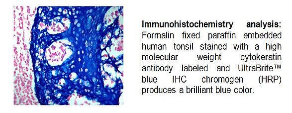 UltraBrite* Blue IHC chromogen (HRP) 30mL^ UltraBrite* Blue IHC chromogen (HRP), substrate system, producing unique blue color for HRP-activated development, can easily be distinguished from other stains, used when utilizing horseradish peroxidase, Form: