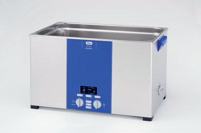 Cleaner^ Ultrasonic cleaner, ELMAsonic P300H. Internal dimensions 19.9x11.8x7.9 inches, with heater, timer, drain, variable power. Dual frequency 37/80 kHz. 4 Ultrasonic modes: normal, sweep, degas, pulse. Extremely high maximum power setting, 110-120V A/C, 7g, with industrial power